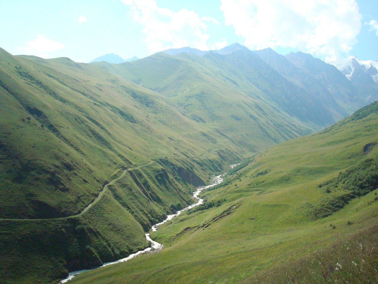 По пропускам проходим погранзаставу. Выдвигаемся по Кармадонскому ущелью к нижним термальным источникам. Устанавливаем палаточный лагерь (1600м). Лекция: безопасность в горах. Вечер знакомств. Ночевка в палатках